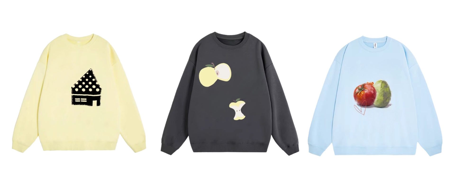 White Fleece-Lined Sweatshirt with Apple Print